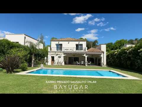 Casa en alquiler en Barrio Privado Sausalito,con posibilidad de alquilarla amueblada/ Disponible a partir del 1/3/2026.<div><br></div><div>Ubicada en un lote interno de 800mts, cerca del acceso principal y de todos los amenities del barrio, esta propiedad combina un estilo clásico con detalles modernos. Está revestida en tarquini tanto en su interior como exterior, cuenta con pisos de porcelanato y aberturas con DVH que aportan confort térmico y acústico.</div><div><br></div><div>Al frente se destaca una amplia entrada, con acceso a una cochera cubierta que permite ingresar directamente a la casa.</div><div><br></div><div>La propiedad se desarrolla en dos plantas:</div><div>Planta Baja: luminoso living comedor con hogar y salida a la galería, cocina semi integrada con abundante espacio de guardado, lavadero independiente, y un dormitorio o escritorio junto a un baño completo.</div><div><br></div><div>Planta Alta: suite principal con vestidor, baño con hidromasaje y box de ducha, más dos dormitorios con placard que comparten un baño completo.</div><div>En el exterior, la casa ofrece una amplia galería con parrilla, baño de pileta y una piscina de 9 x 4 metros con bordes atérmicos. La calefacción es por piso radiante y hay equipos de aire acondicionado en todos los ambientes.</div><div><br></div><div>Sausalito es un barrio privado consolidado desde hace más de 20 años, reconocido por su entorno natural, arboledas maduras, espacios verdes y la presencia de un arroyo y una laguna que aportan un marco paisajístico único.</div><div>El barrio cuenta con seguridad 24 horas y una amplia variedad de amenities deportivos y sociales, entre ellos:</div><div>- Gimnasio completo</div><div>- Polideportivo cubierto</div><div>- Canchas de fútbol, tenis de polvo de ladrillo, hockey y beach vóley</div><div>- Dos piscinas</div><div>- SUM y quincho con parrillas</div><div>- Sectores de juegos infantiles</div><div><br></div> <br> <br> <br>